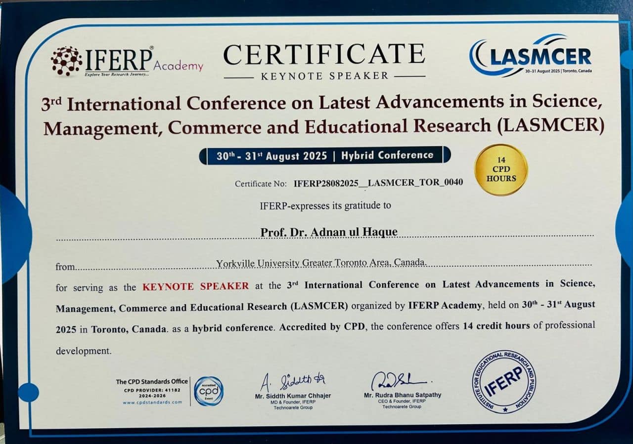 Dr. Adnan ul Haque shared insights on building sustainable and innovative communities at an international gathering. These engagements allow SSBRC to bring world-class ideas back to our work in Simcoe County, enriching our local community initiatives.